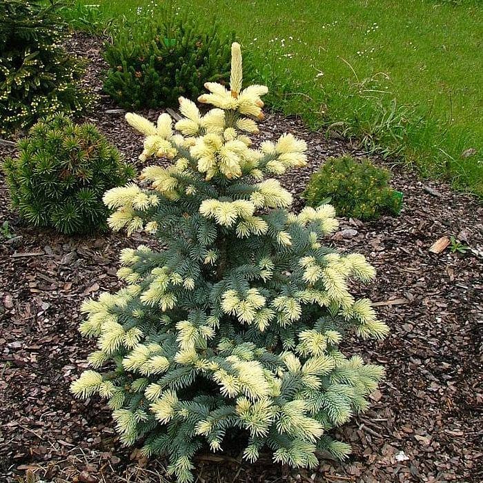 Ель "Бялобок" — это декоративный сорт голубой ели с медленным ростом и уникальной окраской хвои, который ценится за изысканный внешний вид и компактные размеры. Особенность этого сорта — молодые побеги кремово-белого цвета, которые эффектно контрастируют с насыщенно-голубой хвоей более старых приростов. Благодаря этой особенности "Бялобок" моментально выделяется в любом саду.