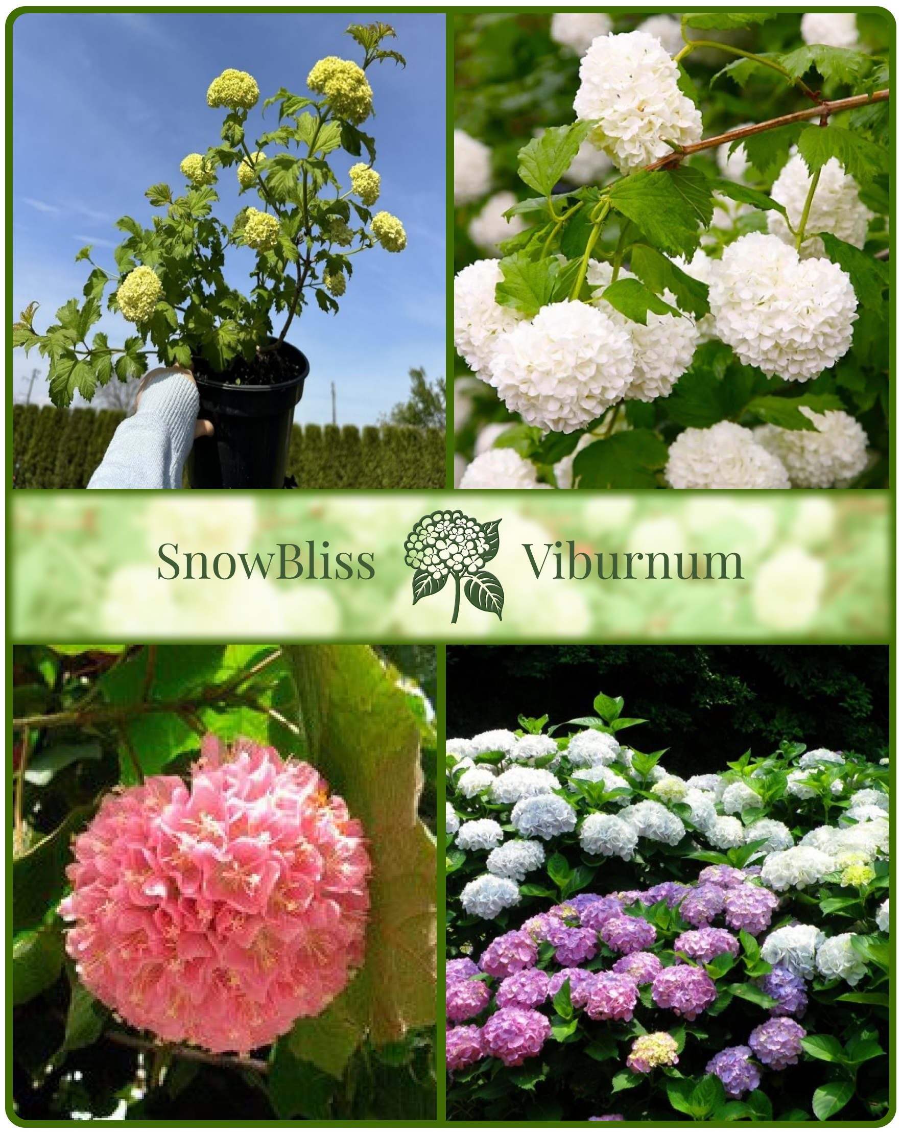 Выберите свой идеальный сорт калины из наших цветущих коллекций. Разнообразие оттенков от нежного белого до розово-белого — для создания гармонии и красоты в вашем саду.