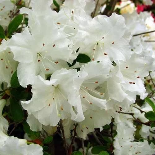 | Нежно-розовый "Миднайт" | Очень красивый вечнозелёный, среднерослый, плотный кустарник. С английского его можно перевести как «Мистическая Полночь». Цветки белые с ярко-малиновой каймой по краю волнистого лепестка и красным крапом. Листья эллиптические, зеленые. | |