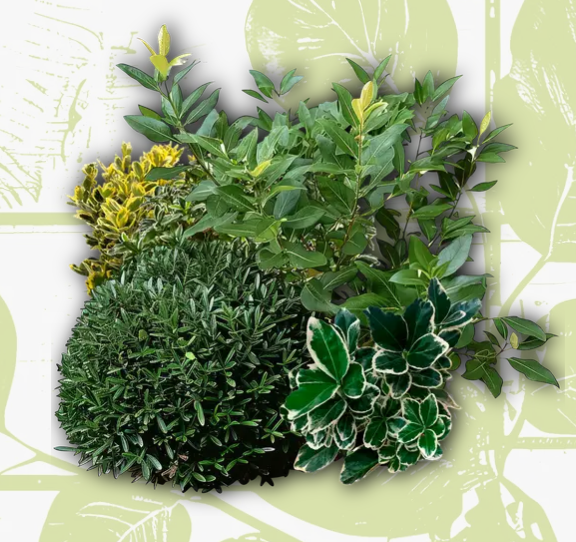 | Бересклет "Сильвер Квин" | Компактный вечнозелёный кустарник с декоративной листвой — зелёные листья с широкой кремово-белой каймой сохраняют эффектность круглый год. Идеален для бордюров, миксбордеров и контейнерного выращивания. Хорошо переносит стрижку и формовку, медленно растёт, создавая плотный ковёр или куст. Неприхотлив, теневынослив, морозостоек до –35 °C. | |