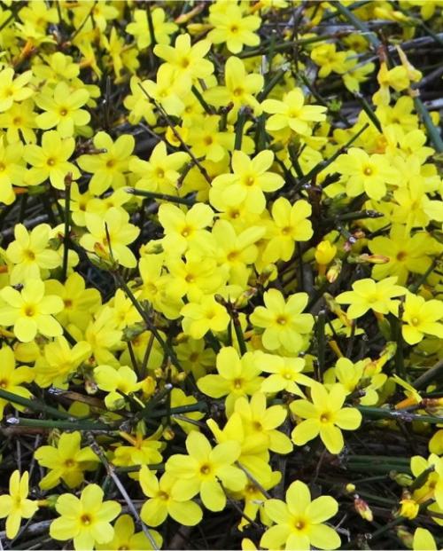 | Жасмин "Голоцветковый" | Изящный кустарник с ярко-жёлтыми цветками, который цветёт ранней весной — ещё до появления листьев. Благодаря этому создаёт эффект "цветущих ветвей на снегу". Идеален для альпинариев, подпорных стенок и контейнерного выращивания. Не требует особого ухода, устойчив к засухе и морозам до –37 °C. Побеги тонкие, красиво свисают, особенно эффектно смотрятся в кашпо и на склонах. | |