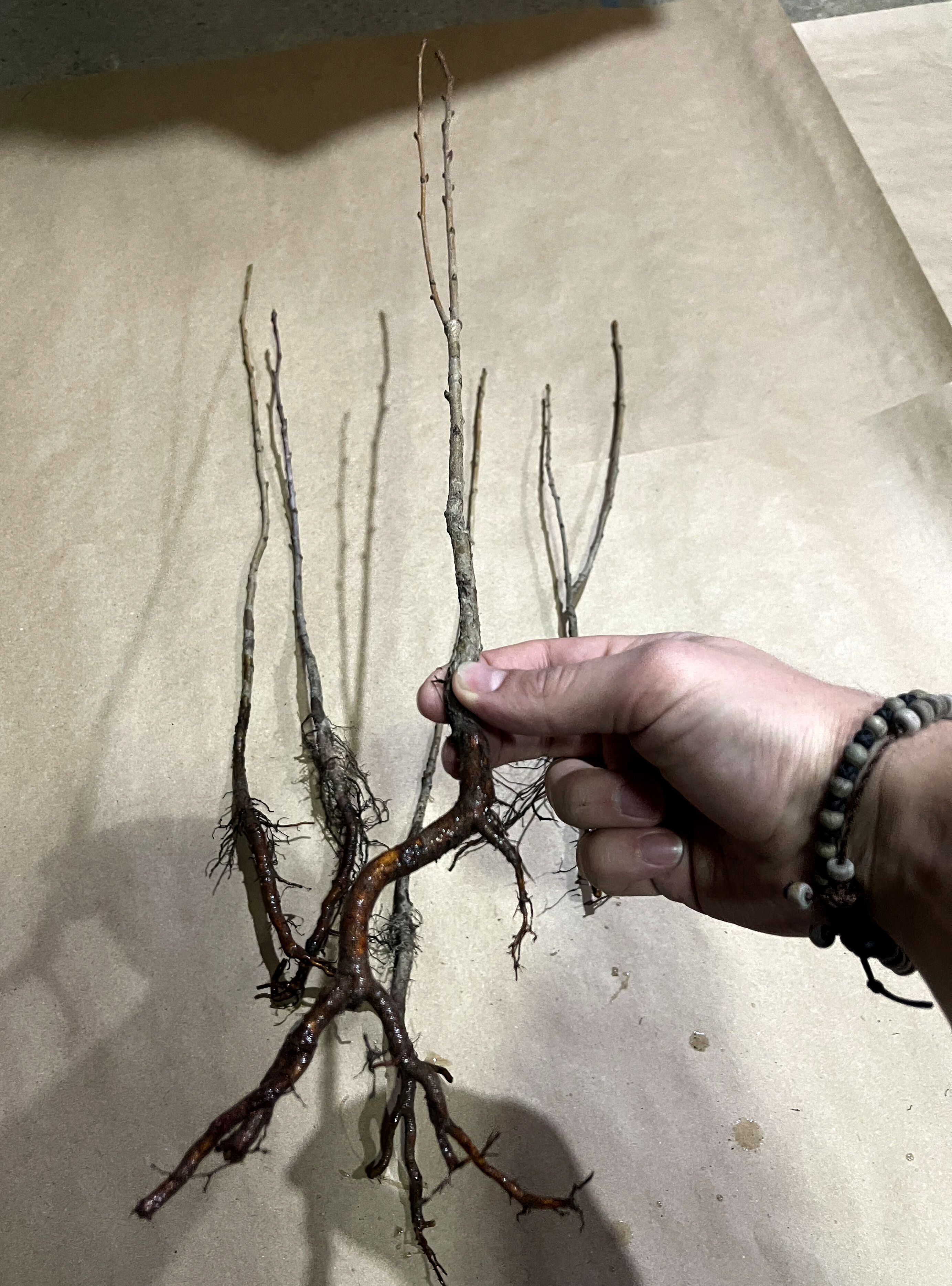 Мы снимаем листья с саженцев, так как они все равно опадут в процессе транспортировки, но все это время будут тянуть энергию со стебля и корня. А также обрезаем верхушку стебля для лучшей приживаемости и быстрого старта роста. Вы получаете полностью здоровый и готовый к посадке саженец.