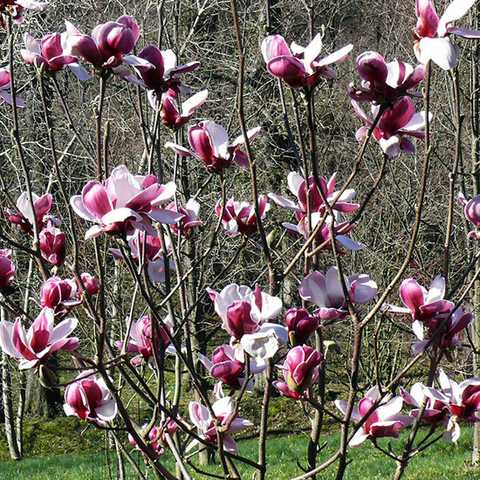 Магнолия Нигра (Nigra) — элегантный сорт с насыщенно-пурпурными, почти бордовыми цветами снаружи и светло-розовыми внутри. Цветки крупные, бокаловидной формы, источают лёгкий приятный аромат и появляются ранней весной, ещё до распускания листвы. Куст или небольшое дерево достигает 2–3 м в высоту, формируя аккуратную, округлую крону, которая прекрасно смотрится в одиночных посадках.