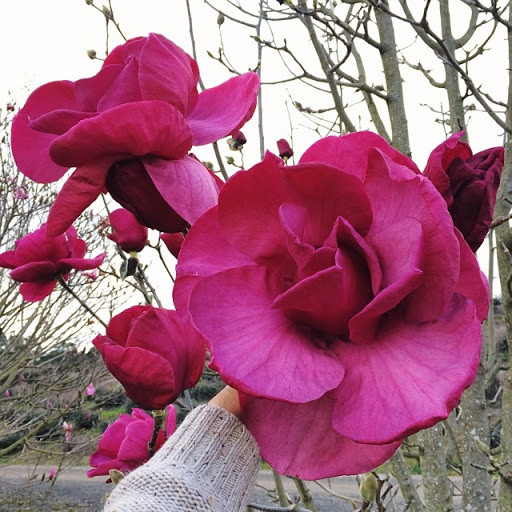 Очень ароматные цветы магнолии 'Rustica Rubra' имеют снаружи яркую фиолетово-красную окраску лепестков, а внутри – белую. Сами цветки широкие, тюльпаноподобные формы и появляются еще до листьев. Взрослый куст или дерево магнолии Rustica Rubra могут украшать цветы величиной до 30 см при раскрытии.