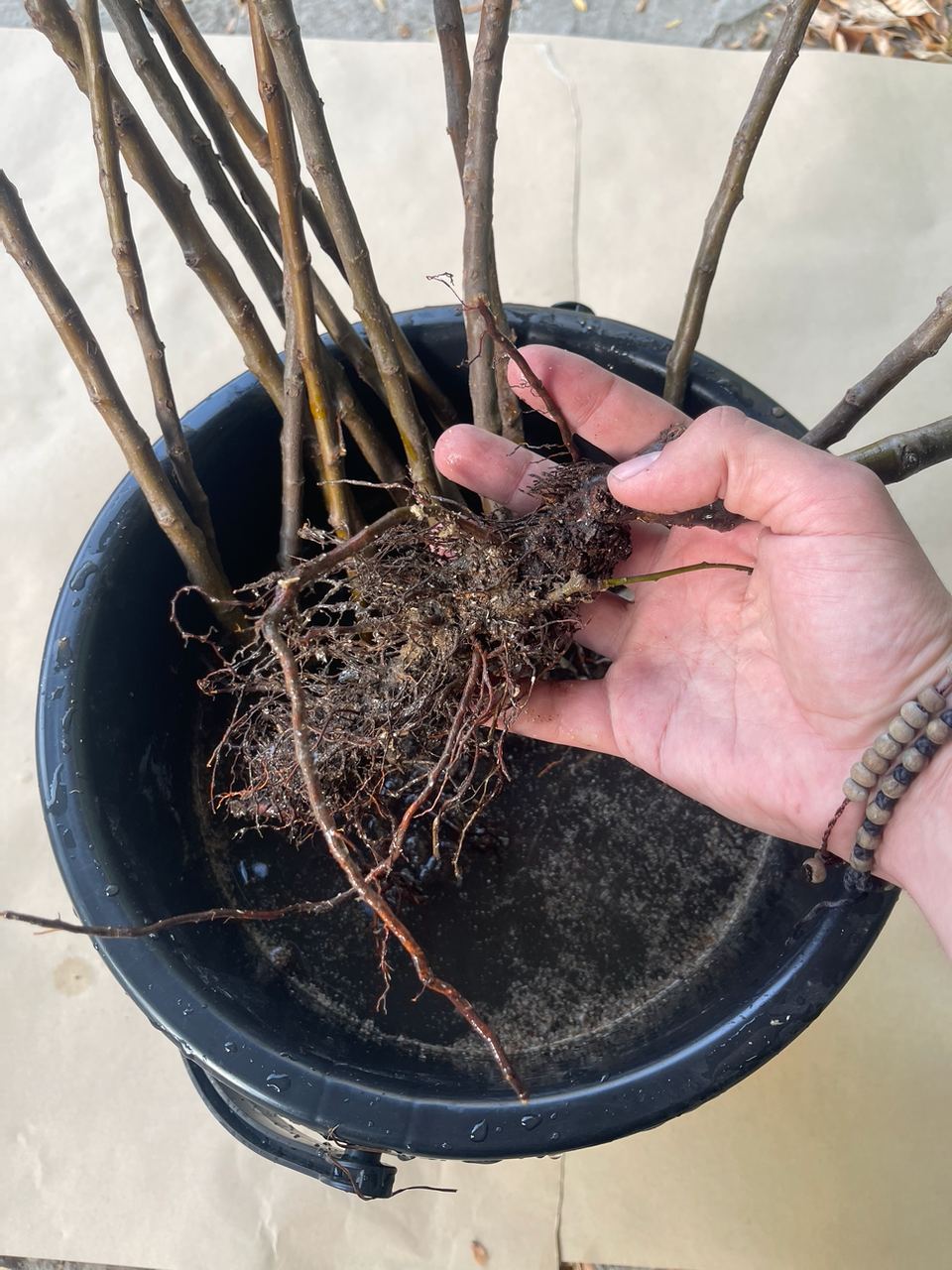 Сначала мы отбираем только лучшие, здоровые растения с развитым корнем и крепким стеблем. Снимаем с них листья, так как лист все равно в процессе транспортировки опадет, но все это время будет тянуть энергию со стебля и корня.