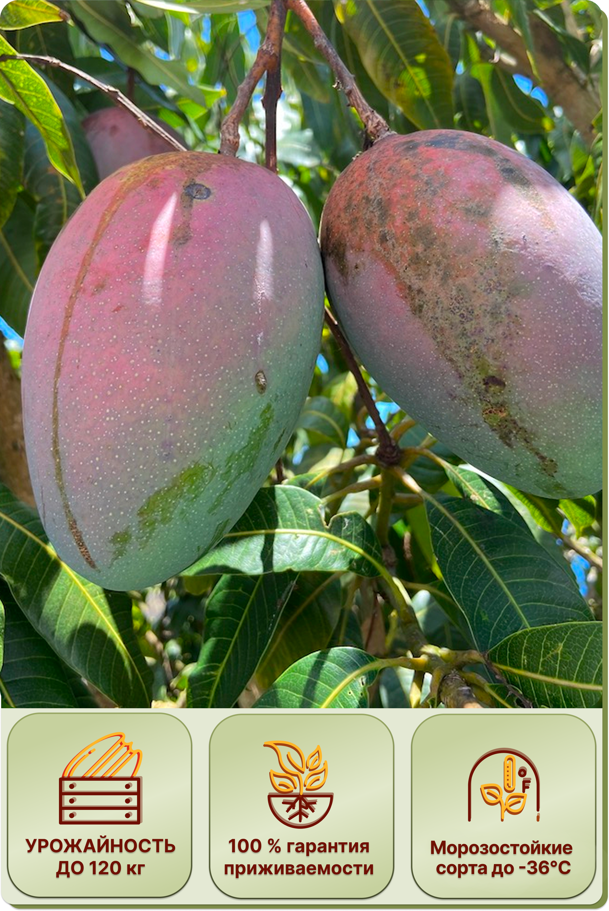 - Идеально растут во всех регионах России: Наши саженцы манго адаптированы к холодному климату и хорошо переносят засуху. Вы сможете наслаждаться сочными фруктами даже в условиях недостатка тепла.